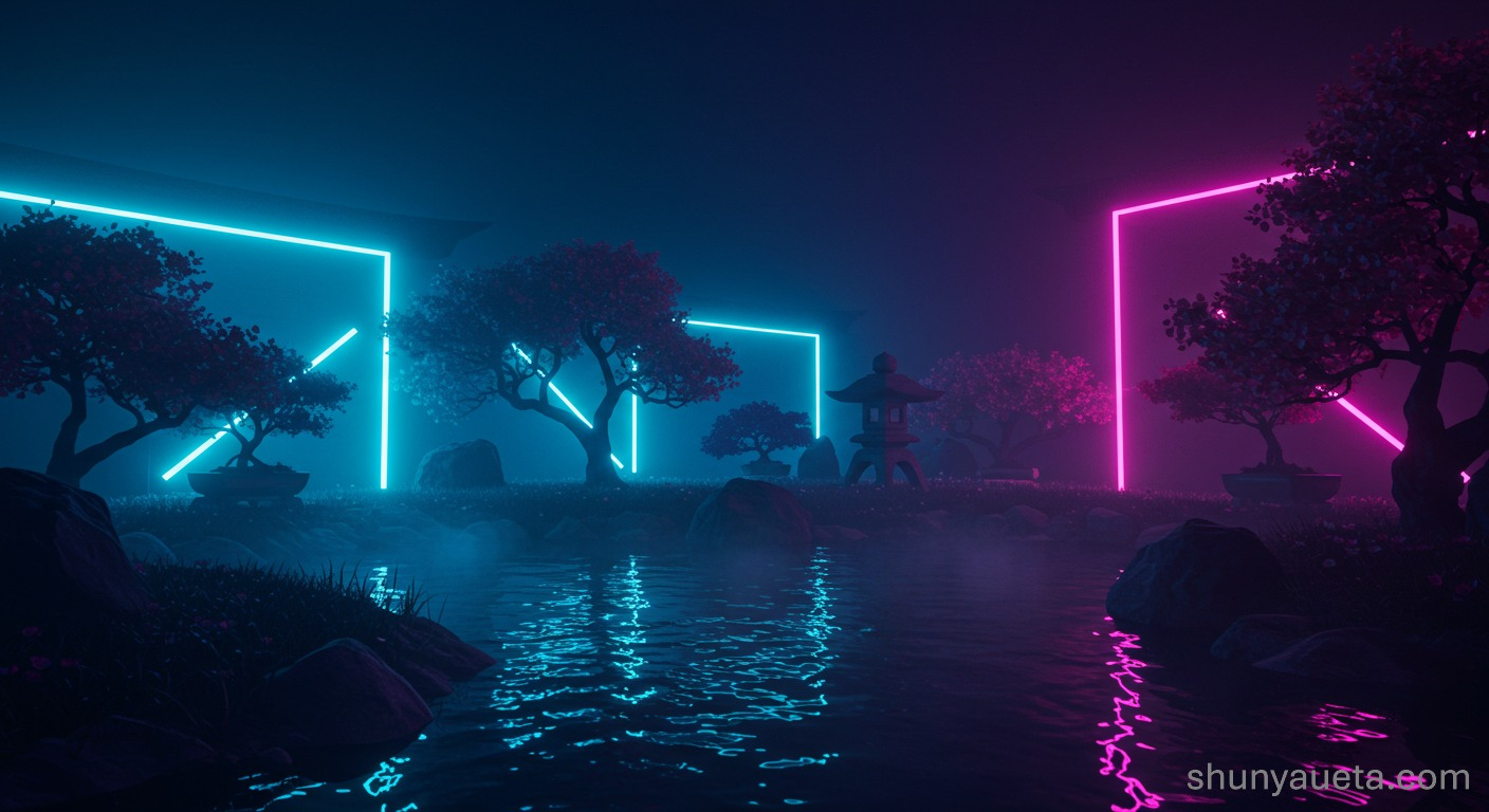 この名前をイメージした上記の画像は、ImageFXで「サイバーパンクな枯山水を書いて」で生成。渋サイバーパンクなイメージ通りの画像ができてうれしい。自分はロックマンエグゼが大好きなんだが、電脳空間というワードがその時から、気に入っている