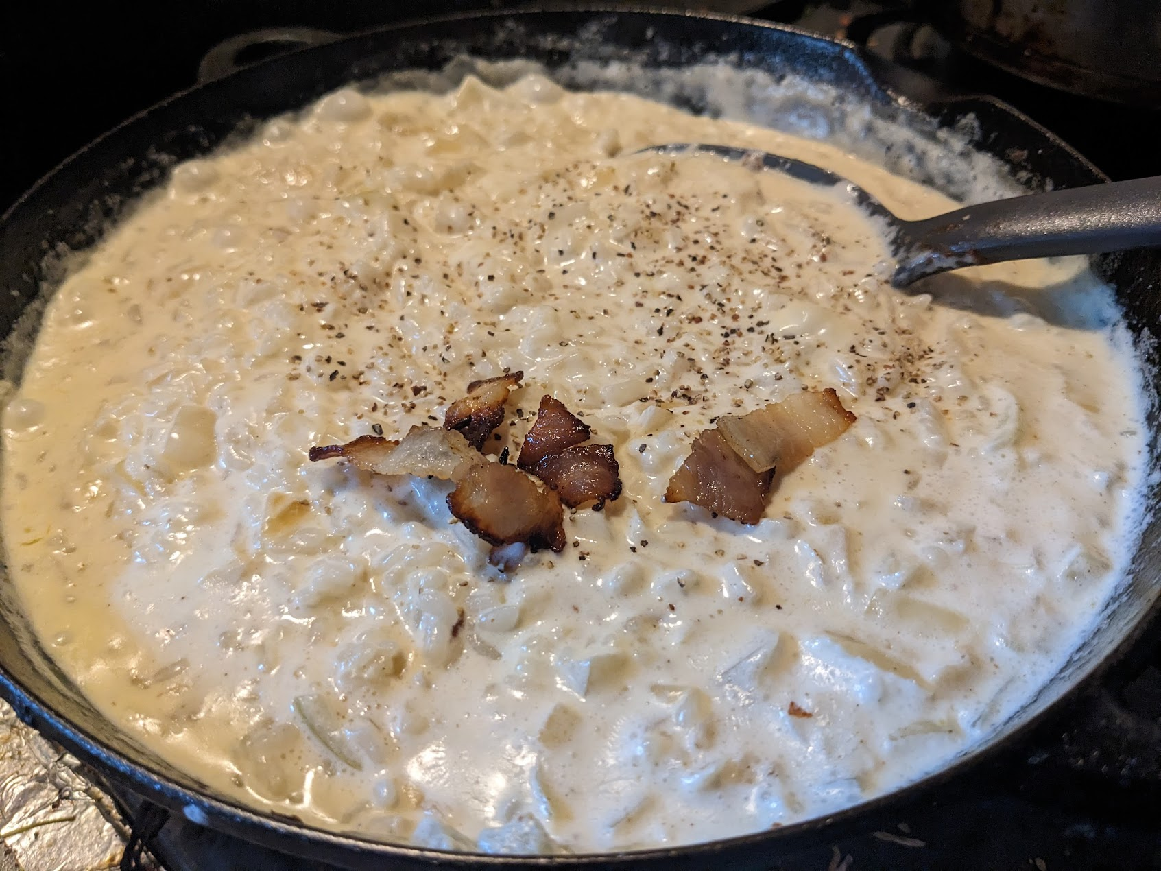 具材は単純だが、思った以上に濃厚でおいしい。 キノコとか入れたくなるけど、あえて入れないことでチーズと生クリームの濃厚さがよい意味で際立っている。 ほかのレシピだと、ブイヨン入れたりするけど、さらっと食べやすい代わりに濃厚さは消えそう。