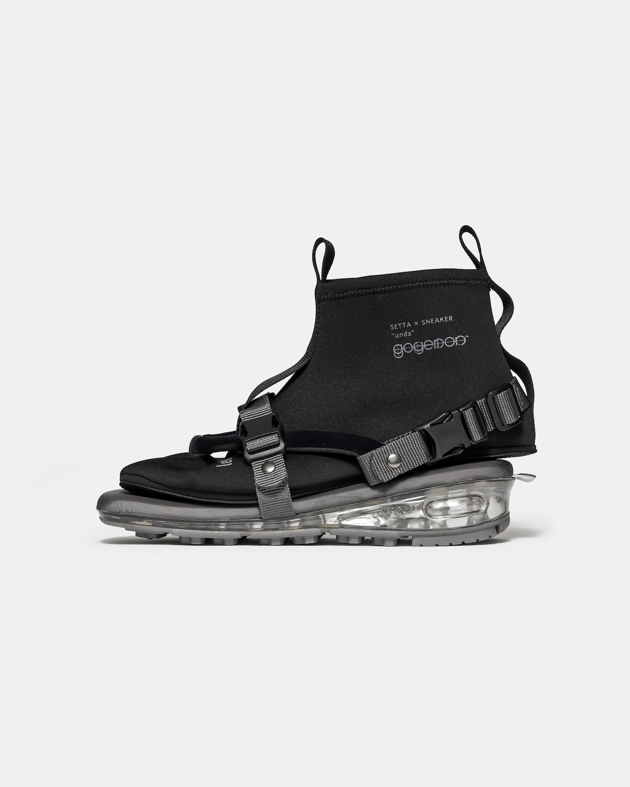 かっこいいいいい。 サイバーパンク和装って感じでかっこいい。 あと、今までのunda はあくまで雪駄だったが、これは雪駄止めが装着されて、それが機能性の面でも良さげやなと。