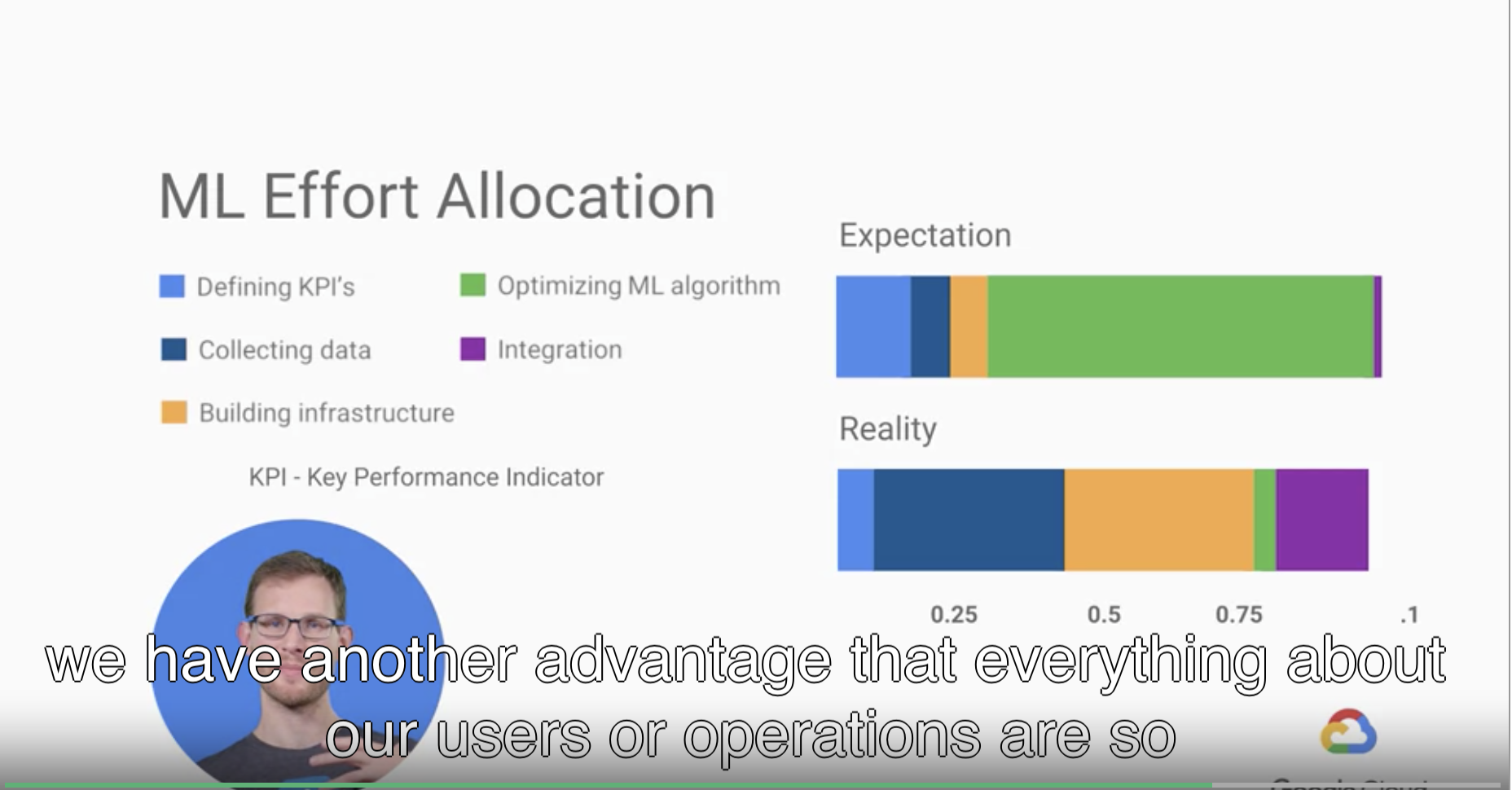 - 自分で 1 からモデルを作らずとも GCP の Vison API など実際は提供されている機械学習の API を使えば事足りこともある。本当に機械学習システムを 1 から作るのは大変