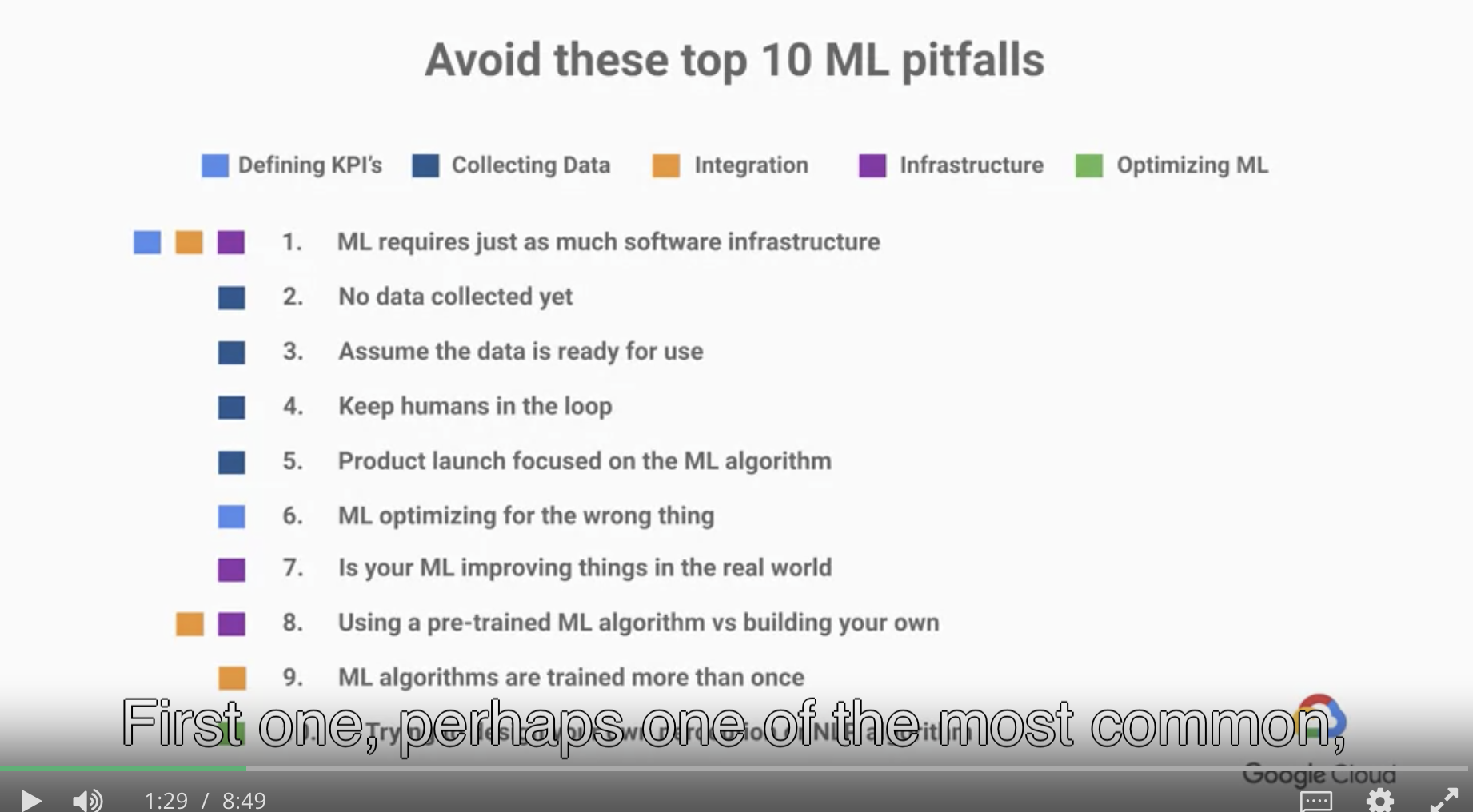 講師陣が Google 内部でのインタビューを行い、機械学習プロジェクトのアンチパターンのランキング Top10 を公開してくれています。